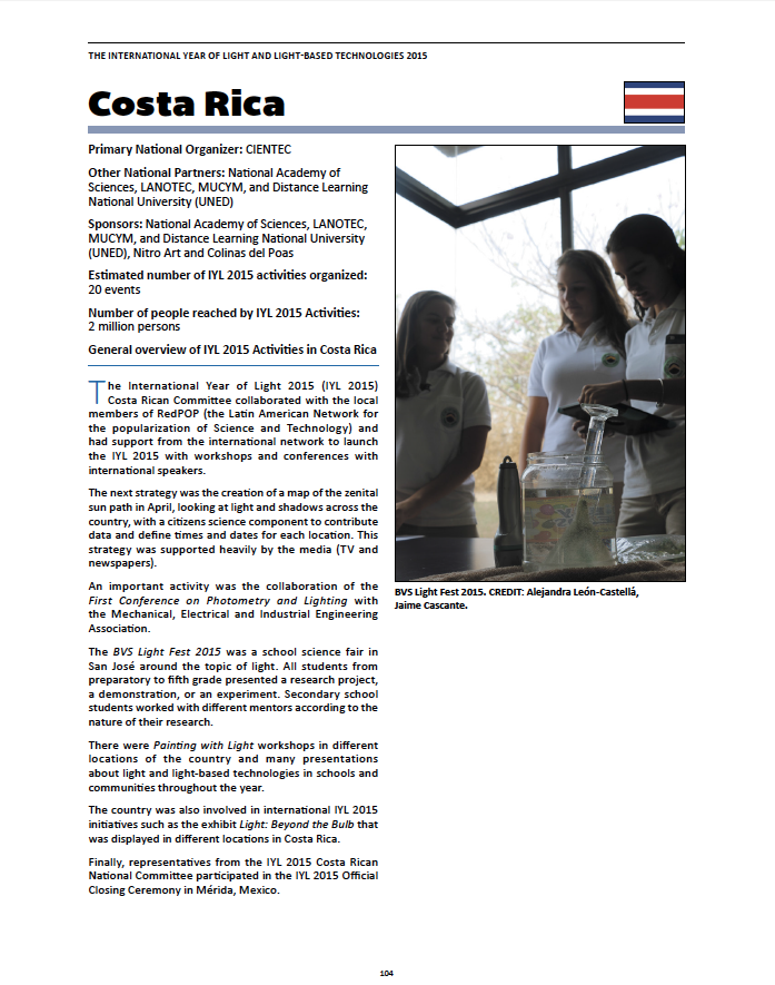 CIENTEC lideró muchas de las actividades que ponen a Costa Rica en el reporte de alcances del Año Internacional de la Luz 2015.