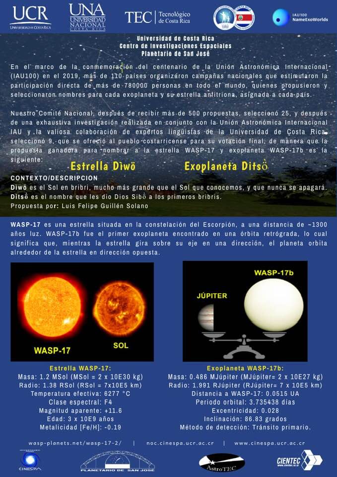Finalmente tenemos una estrella y su planeta con los nombres bribri, como parte de esta celebración de 100 años bajo un mismo cielo de la Unión Astronómica Internacional.