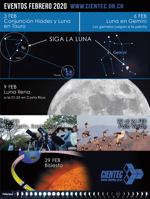 - 13 de Feb. – Ocultación del asteroide Juno por la Luna visible en Norteamérica, Centroamérica, el Caribe, Colombia y Venezuela