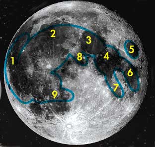 Les dejamos aquí una lista de los grandes valles oscuros llamados "mares" en la Luna.