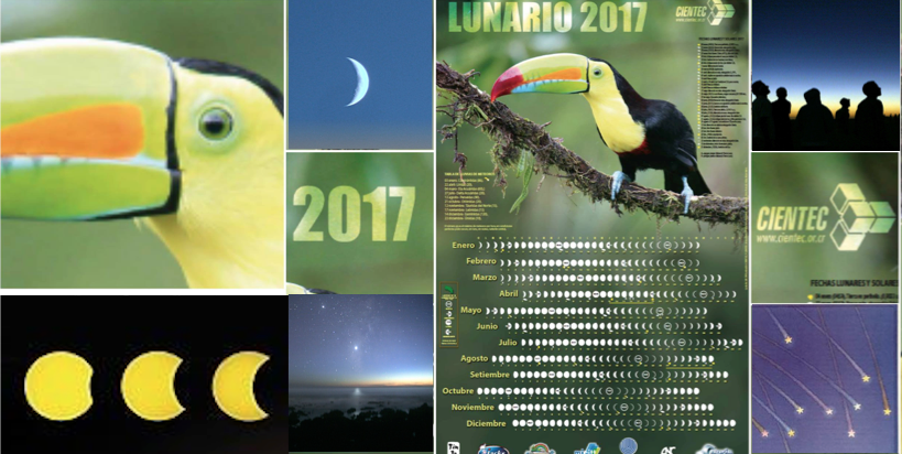 Le invitamos a la presentación del Lunario el próximo martes 11 de Oct. a las 7 p. m. en el Restaurante Tin JO (Calle 11, Avs. 6-8, San José). Allí hablaremos de los eventos astronómicos observables a simple vista del 2017 en la región y de la variedad de tucanes en nuestro país. Precio: ¢5.000 colones. Descuento del 20% durante la presentación. Entrada gratuita. Para reservaciones: cientec@cientec.or.cr, Tel: 2280-45-61.