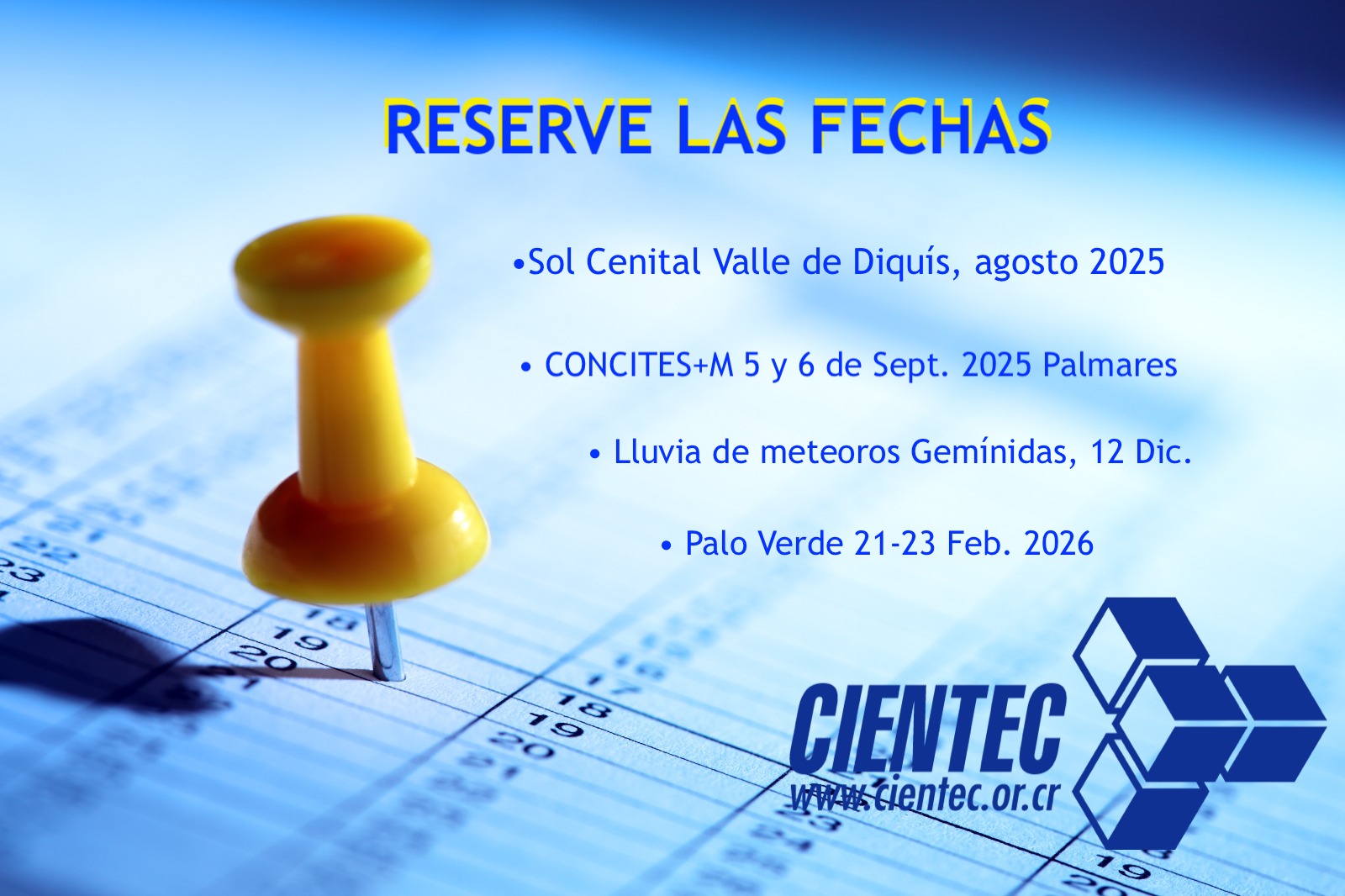- Organizamos el congreso CONCITES+M el 5 y 6 de Sept. 2025 en el SEP International School y U. Empresarial en Palmares, Alajuela, Costa Rica. Esta es la edición XXVII del CONCITES, Congreso Nacional de Ciencia, Tecnología y Sociedad, que incluye Matemática de escuela primaria, por lo que las siglas son CONCITES + M 2025. Ya están abiertos los formularios de ponentes y participantes. https://www.cientec.or.cr/programas/educadores-divulgadores/concites-m-2025