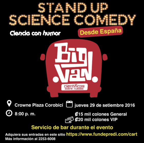 El colectivo de monologuistas de ciencia, "Big Van, científicos sobre ruedas", visitará Costa Rica como parte de las actividades organizadas del Simposio “Comunicación científica como profesión: formación, responsabilidades y roles” que organiza la Universidad Estatal a Distancia y la Fundación CIENTEC, con el respaldo de la red global de Comunicación Pública de Ciencia y Tecnología (PCST por sus siglas en inglés).