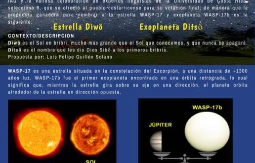 Finalmente tenemos una estrella y su planeta con los nombres bribri, como parte de esta celebración de 100 años bajo un mismo cielo de