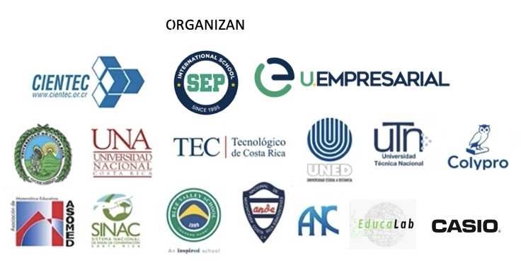 Coorganizadores: CIENTEC, SEP International School, U. Empresarial, UCR, UNA, UNED, UTN, COLYPRO, ANDE, ACEP, ASOMED, SINAC, Blue Valley School, ANC, EducaLabCR- Casio
