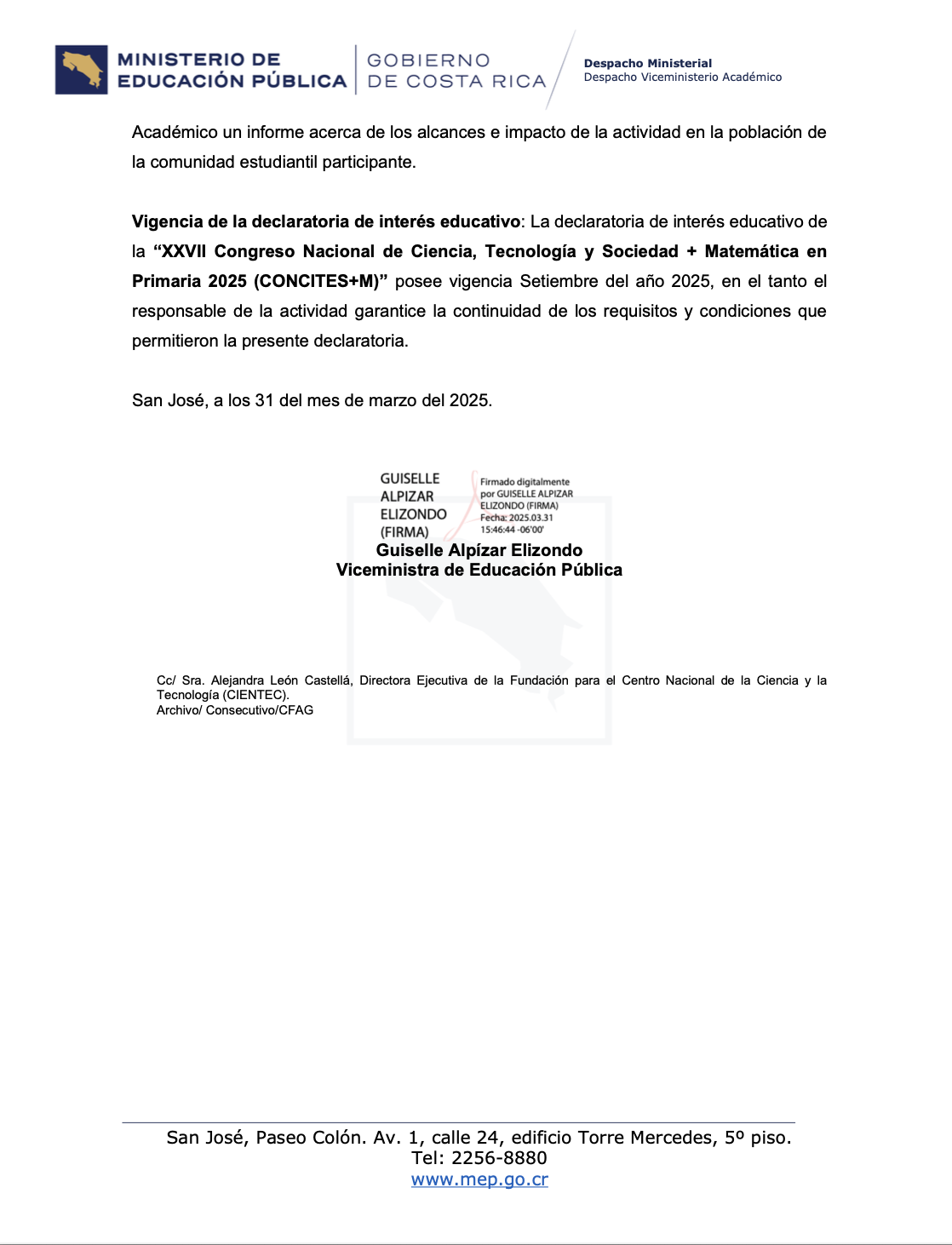 El CONCITES + M 2025 se realizará en Palmares, Alajuela, Costa Rica, en los siguientes horarios.
