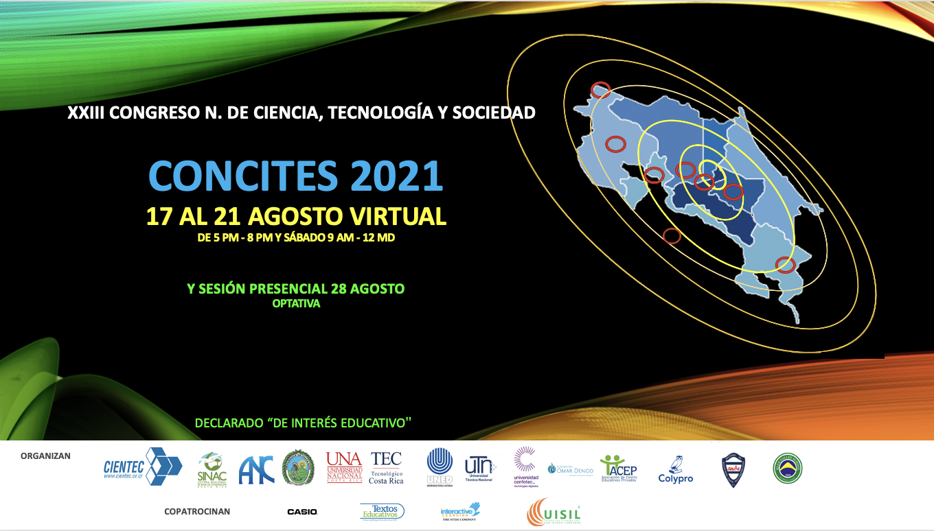 Este año realizaremos el XXIII CONCITES, Congreso Nacional de Ciencia, Tecnología y Sociedad, en formato híbrido, con un evento virtual del 17 al 21 de agosto, seguido del sábado 28 de agosto que será dedicado a talleres, laboratorios y giras presenciales, como espacio opcional.
