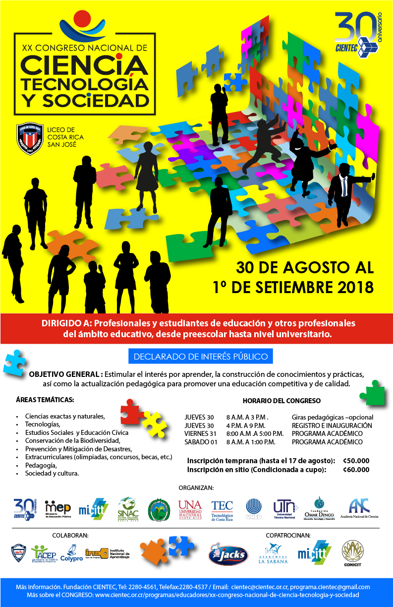 Cada año, CIENTEC lidera la realización del Congreso Nacional de Ciencia, Tecnología y Sociedad, alternando un año dentro del Valle Central y luego en otra región del país.