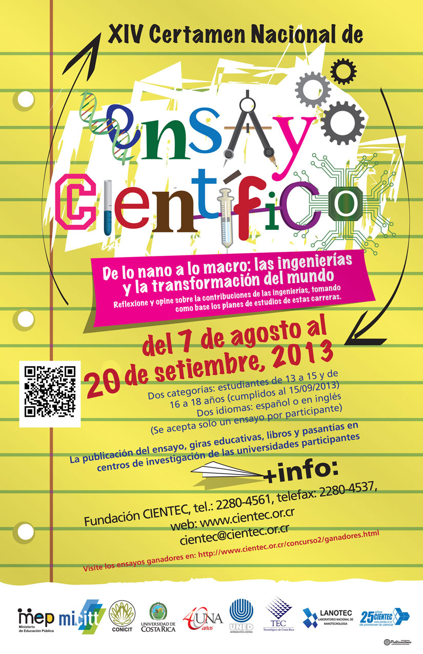 Participá y formá parte de los doce jóvenes reconocidos este año. Obtendrás una publicación digital de tu ensayo y otros grandes premios. Todos los ensayos ganadores se encuentran publicados en el Centro Virtual de Ciencias de CIENTEC (www.cientec.or.cr) donde reciben miles de visitas semanales.