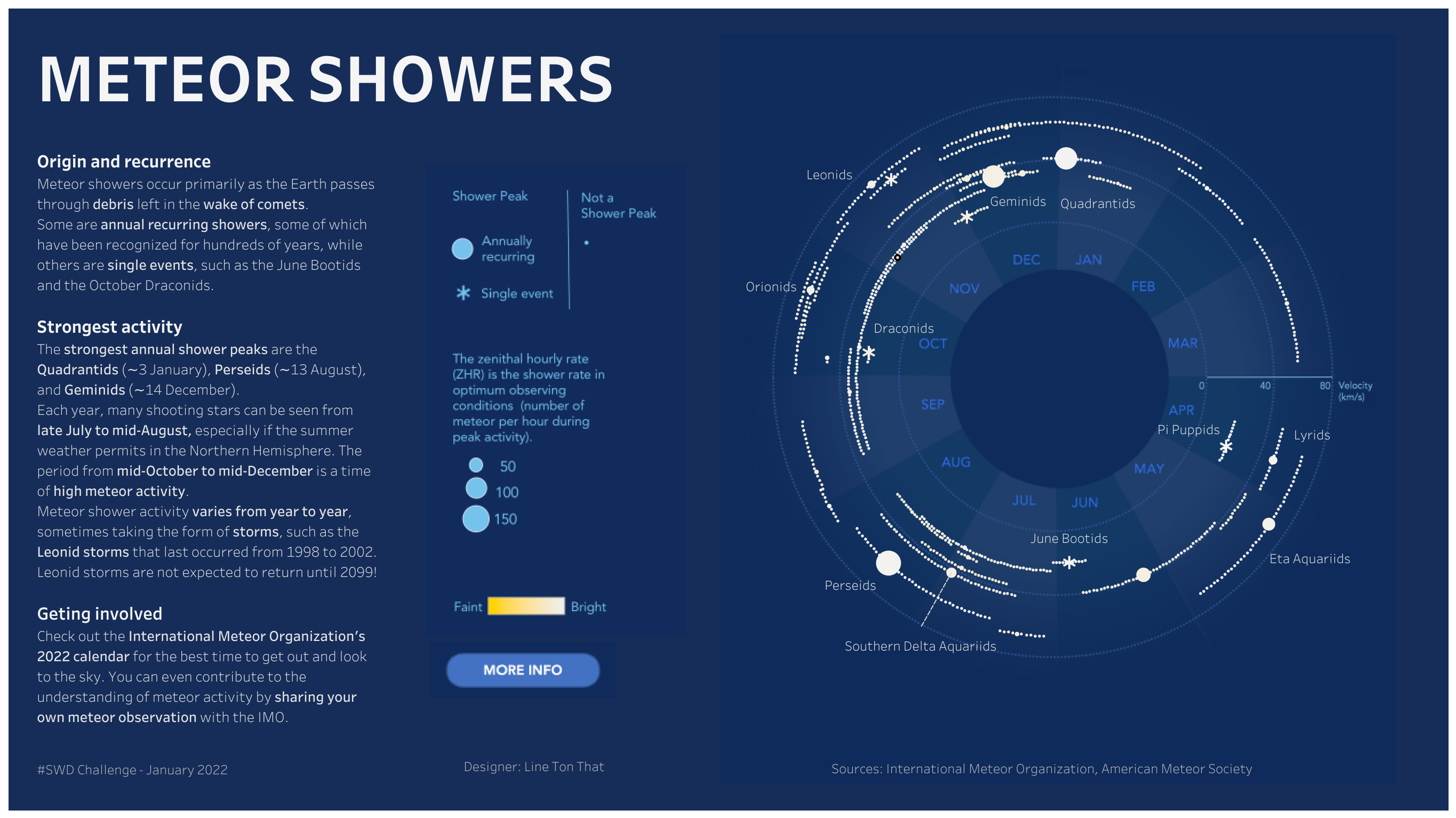 De acuerdo a la Organización Internacional de Meteoros, IMO, el pico de esta lluvia de estrellas es extendido y se pueden observar bastantes meteoros en los días anterior y posterior. Los meteoros de mediana velocidad son brillantes y coloridos.
