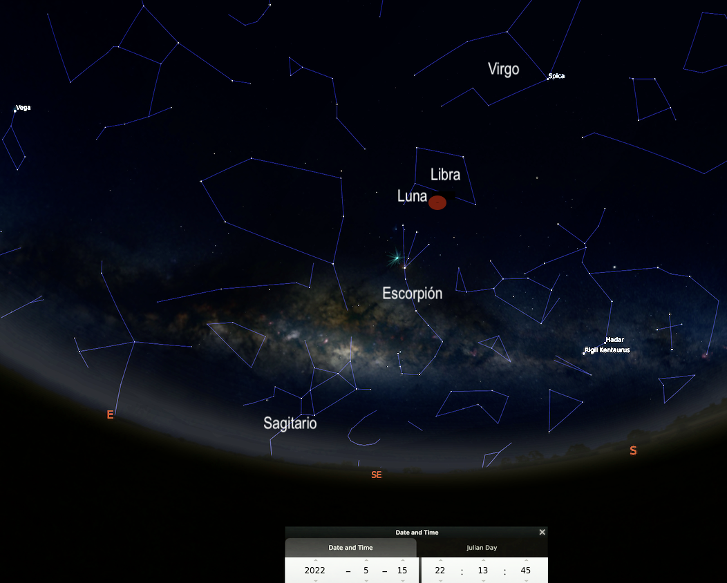 Cuando la Luna se encuentre en fase de totalidad, sumergida en la sombra oscura de la Tierra, en el este de la constelación de Libra, se oscurecerá poniéndose rojiza. Entonces se volverán a ver las estrellas del entorno por más de una hora. El seguidor de eclipses Fred Espenak comenta que "... se podrá apreciar el brillo de la Vía Láctea. La Luna estará a 30° al oeste de las nebulosas más brillantes en Sagitario. Además, las estrellas cercanas servirán para comparar el brillo de la Luna eclipsada. Estarán Antares (el corazón del Escorpión) con una magnitud +0.92v a 15° sudeste, Shaula (la colita este del Escorpión) con magnitud +1.63 a 31° sudeste, Epsilon Sgr (mv = +1.85) a 40° sudeste, Arcturus (mv = -0.05) estará a 43° al noreste y Spica en Virgo (mv = +0.97) a 32° noreste de la Luna. La luminosidad de la Luna en Totalidad, puede estimarse fácilmente con binoculares".