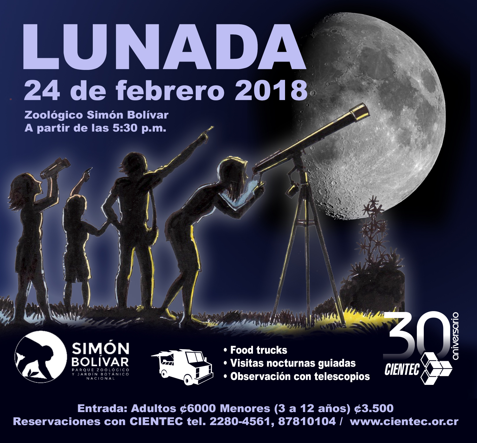 Como parte de las actividades astronómicas del inicio del 2018, cientec organiza una Lunada en el Zoológico Simón Bolívar el 24 de febrero, en San José.