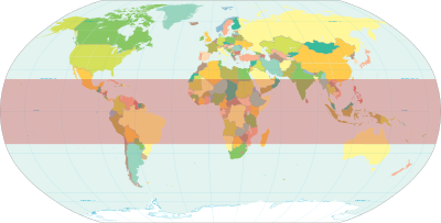 Zona intertropical (color rojo). Fuente: Wikimedia