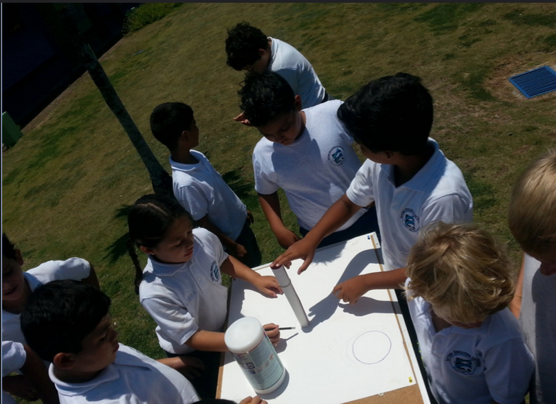 - Marque los bordes de las sombras en el papel, para seguir el movimiento del sol, junto con la hora en que sucede esta sombra. Guarde los datos y repita la medición al día siguiente.