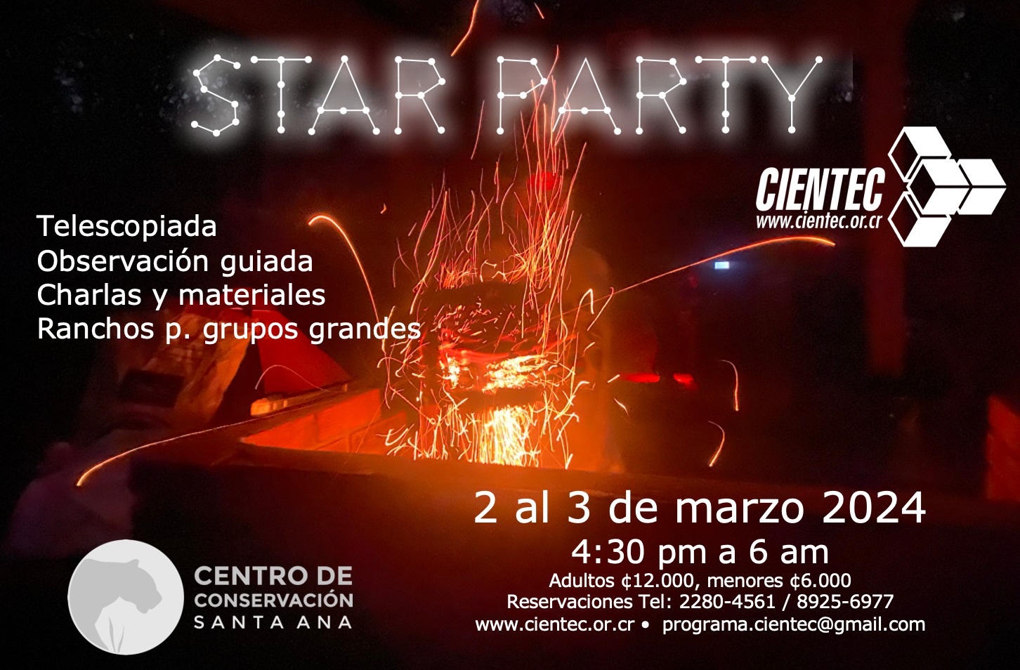 Venga disfrute de una noche astronómica en Santa Ana. La Fundación CIENTEC y Fundazoo organizan una actividad con cupo limitado del 2 (4:30 pm) al 3 (6 am) de marzo 2024 en el Centro de Conservación Santa Ana.
