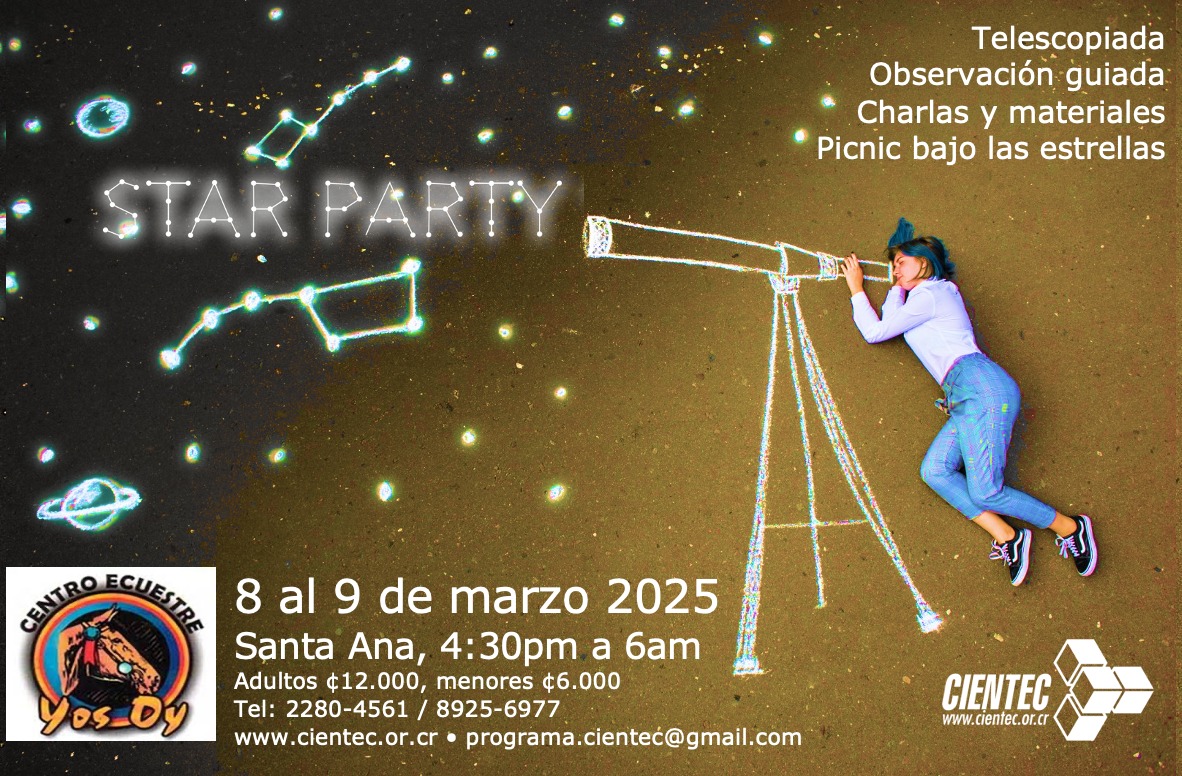 Venga disfrute de una noche astronómica en Santa Ana. La Fundación CIENTEC y Centro Ecuestre Yos Oy organizan una actividad con cupo limitado el 8 de marzo 2025, en Santa Ana.